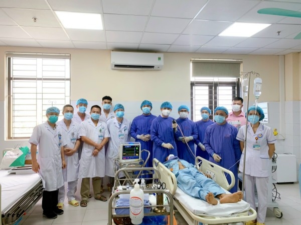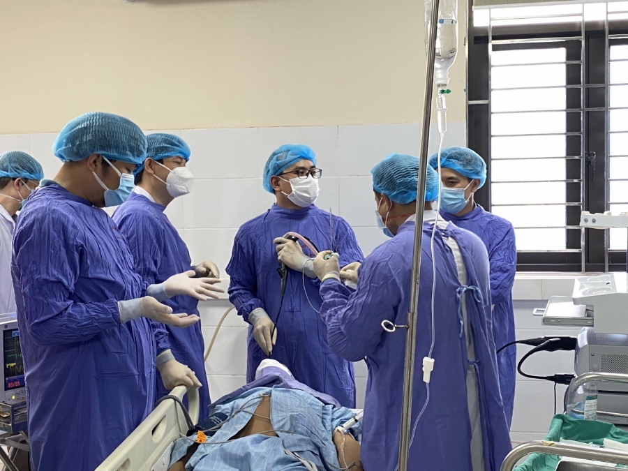 Các bác sĩ tiến hành nội soi phế quản ống mềm gây mê cho bệnh nhân